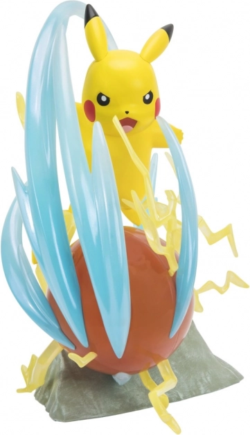 Figura Pokemon Pikachu DeLuxe, ki sveti. Ima LED svetlobne učinke, visoka je 33 cm in je priložena v darilni embalaži.