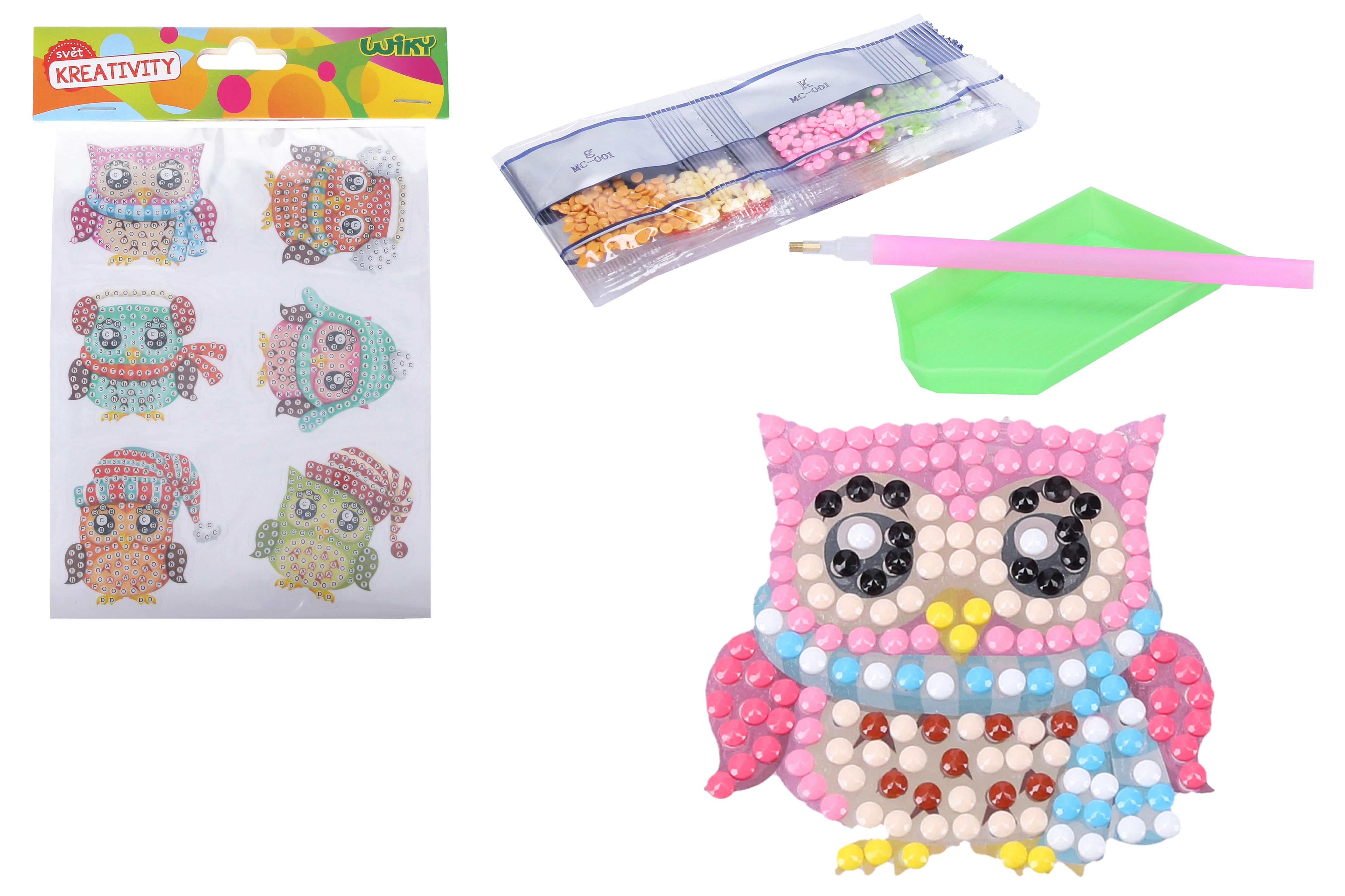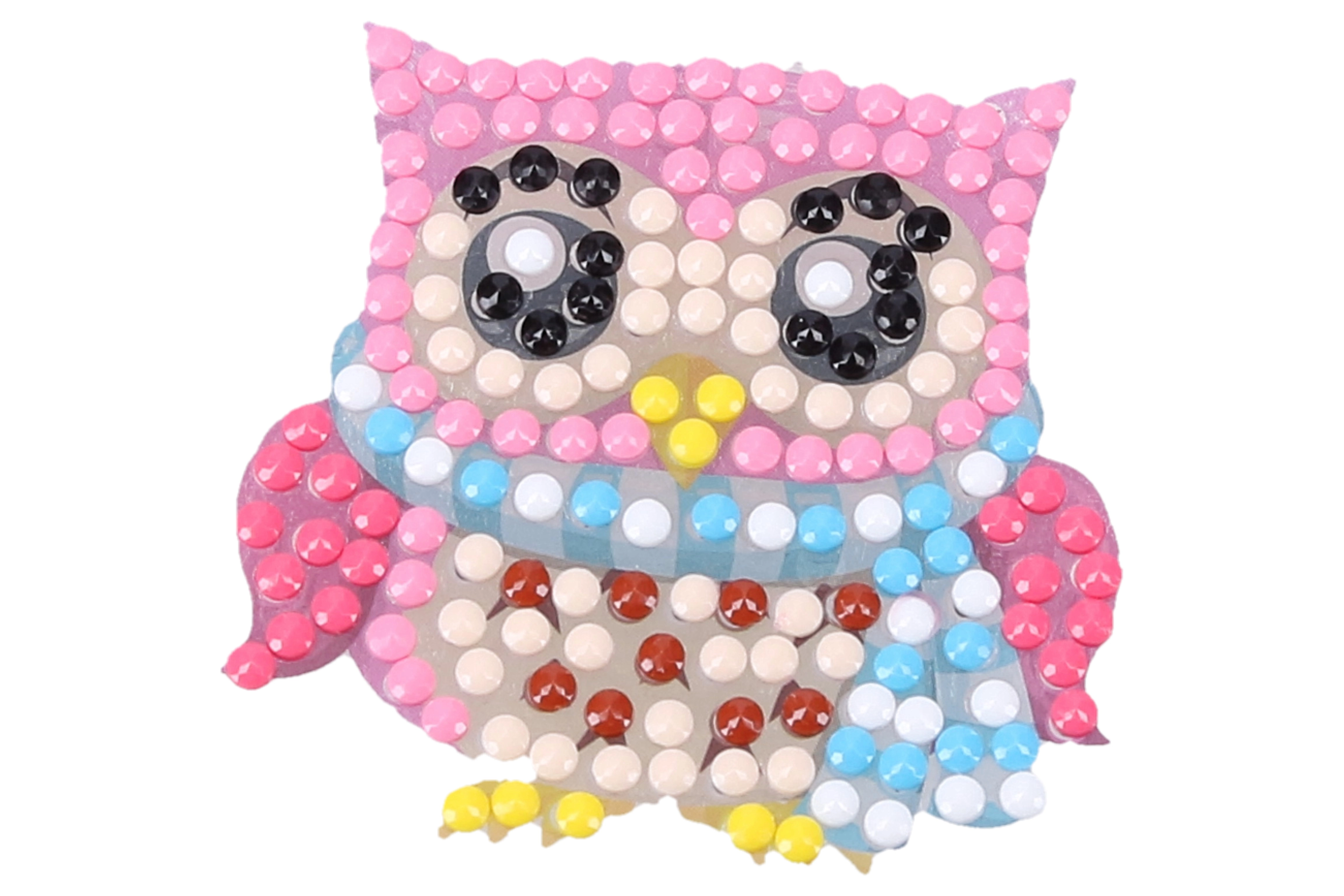 Ustvarite svoje bleščeče dekoracije z motivi sov. Set diamantnih nalepk je odlično darilo za male in velike ustvarjalce ter prinaša veselje do ustvarjanja in čudovit rezultat. S priloženimi kamenčki in aplikatorjem boste zlahka dokončali motive po barvni kodi.