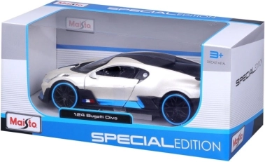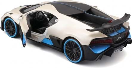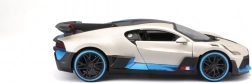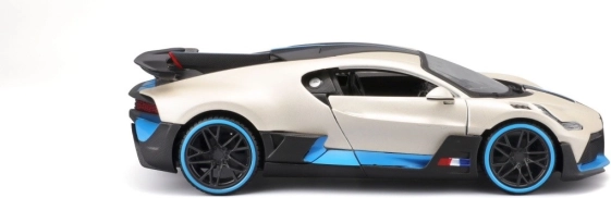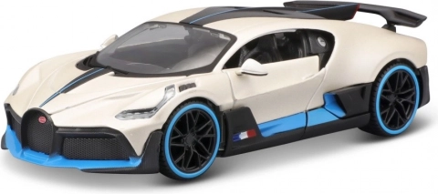 Odkrijte natančno izdelan model BUGATTI Divo 1:24 v elegantni beli barvi z modrimi poudarki. Zaradi kombinacije kovinskega ohišja in plastičnih elementov ponuja odlično razmerje med detajli in vzdržljivostjo, medtem ko realistična zasnova poudari športni značaj izvirnika.