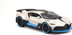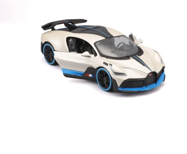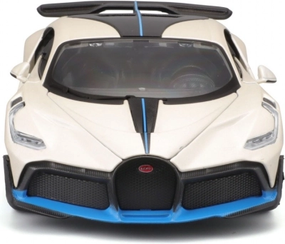 Bela izvedba z modrimi poudarki in verno izdelanimi kolesi poudarja aerodinamične linije BUGATTI Divo ter deluje ekskluzivno v vsaki zbirki.