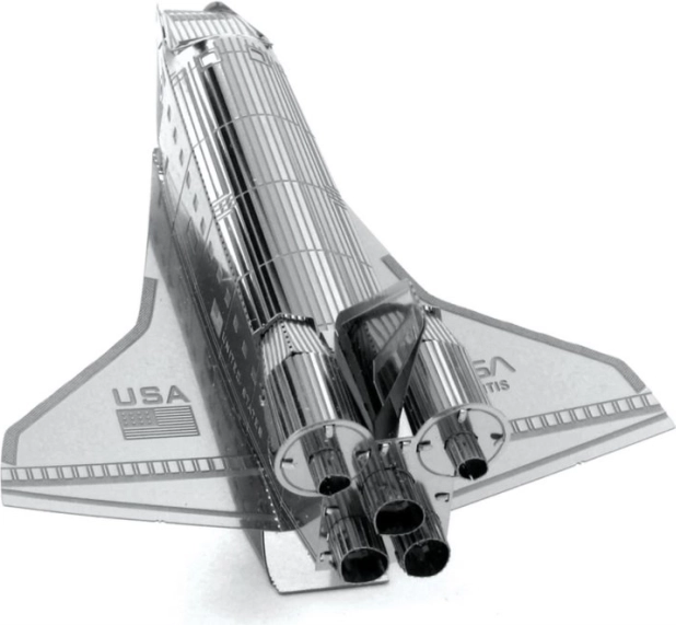 METAL EARTH Raketoplan Atlantis je natančen 3D kovinski model, izrezan z laserjem. Iz kvadratne jeklene ploščice velikosti 11 × 11 cm sestavite zvesto repliko legendarnega orbiterja NASA z drobnim graviranjem, šobami in napisi »United States« ter »USA«. Sestavljen model je idealen kot zbirateljski kos ali izvirno darilo.