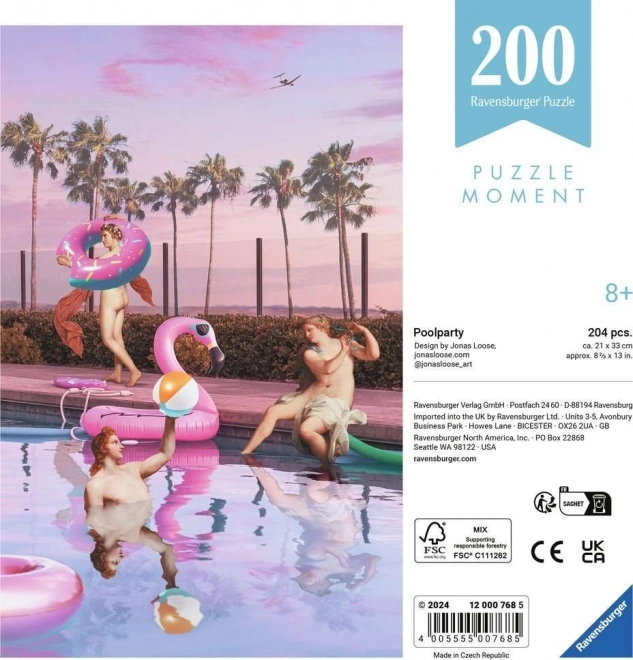 Uživajte v trenutkih miru in sprostitve s sestavljanko RAVENSBURGER iz serije Puzzle Moment. Slogovni motiv zabava ob bazenu, 200 natančnih koščkov in kompaktna velikost sestavljene slike 33 × 21 cm so idealni za kratko, a izpolnjujoče sestavljanje. Odlično za začetnike in izkušene ljubitelje sestavljank – RAVENSBURGER kakovost zagotavlja popolno izkušnjo.