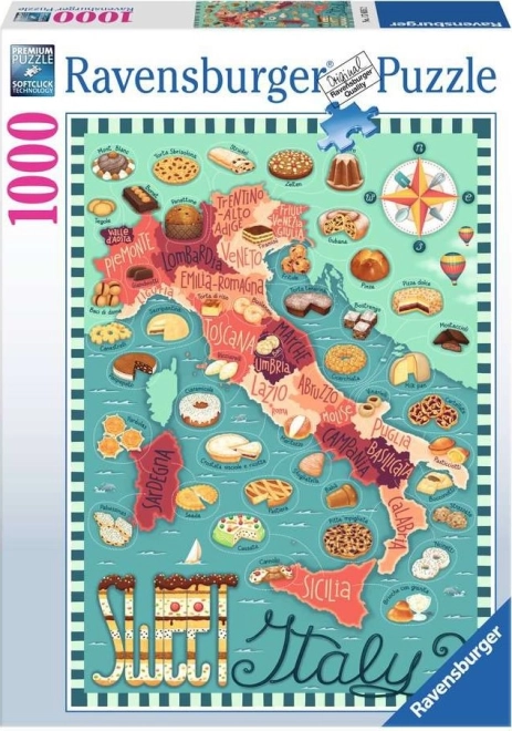 Uživajte v sprostitvi ob sestavljanju izvirnega motiva, ki povezuje italijanske pokrajine in njihove priljubljene sladice. Sestavljanka RAVENSBURGER je znana po vrhunski kakovosti, natančnosti kosov in trpežnosti, kar zagotavlja tekoče in zabavno sestavljanje.