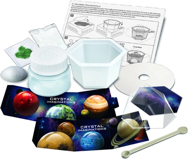 Po zaključku poskusa lahko kristal razstavite v prozorni vitrini s prostorskim motivom, zato bo služil tudi kot izvirna dekoracija otroške sobe. Komplet razvija potrpežljivost, opazovalne sposobnosti in zanimanje za naravoslovje.