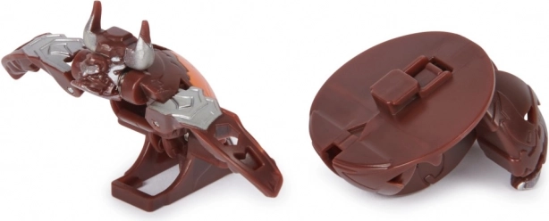 Rjav Bakugan s srebrnimi detajli se ob prehodu preko vratne karte odpre v bojno obliko – ikonična transformacija kot v seriji.