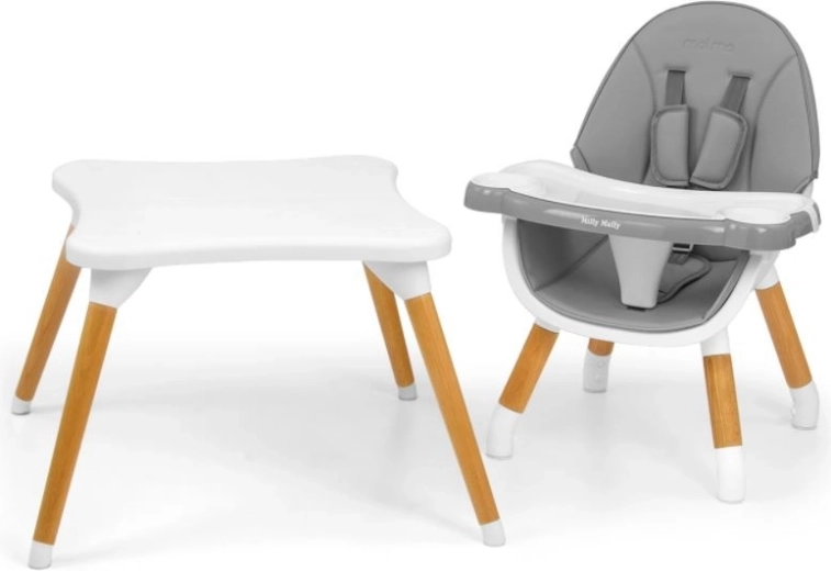Stolček je mogoče enostavno prilagoditi starosti in višini otroka. Stabilna konstrukcija omogoča preprosto premikanje, gumijaste nogice pa ščitijo tla.