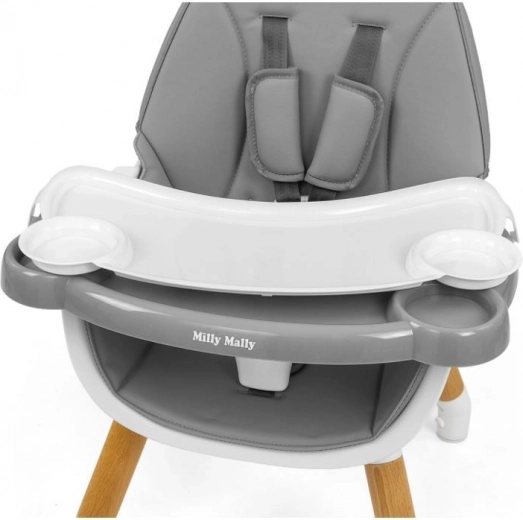 Nastavljiv 5-točkovni varnostni pas zagotavlja udobje in varnost vašega otroka. Eko usnje je enostavno za čiščenje in odporno proti umazaniji. Oblikovan pladenj preprečuje drsenje predmetov. Stabilna in lahka konstrukcija omogoča enostavno premikanje, gumijaste nogice pa ščitijo tla pred praskami. Ta izdelek je odlična izbira znotraj družine izdelkov Grow Up.