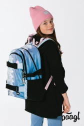 Šolski nahrbtnik Baagl Skate Moon prinaša inovativno udobje in stil. Opremljen je s tremi ločenimi zapiralnimi predali, ki vključujejo organizator in poseben žep za 15" prenosnik ali tablico. Nizka teža in prostornina 25 litrov zagotavljata udobje in dovolj prostora za vse potrebne stvari.