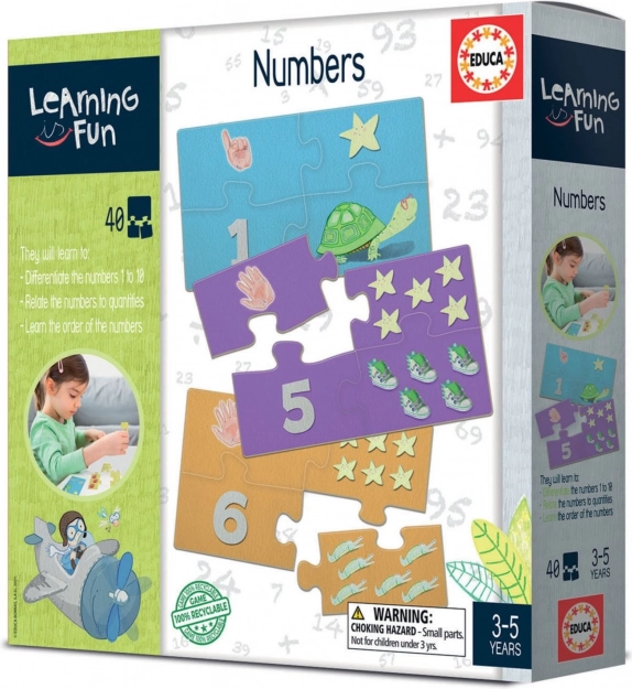 Odkrijte igrivo pot do matematike z linijo EDUCA Learning is Fun. Ta komplet otroke seznanja s številkami 1–10, uči jih prvega računanja in povezuje številko, število slik in prste. Vsaki številki ustrezajo 4 koščki sestavljanke, ki razvijajo fino motoriko, logično razmišljanje in potrpežljivost. Poleg tega je izdelek 100 % reciklabilen.
