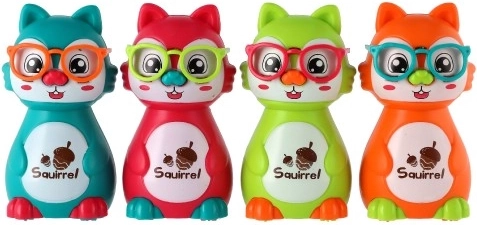 Zabavna plastična veverica na vztrajnik, ki se po pritisku na glavico sama zažene. Zaradi preprostega upravljanja, odporne plastike in živih barv je idealna igrača za otroke od 3 let ter podpira razvoj motorike in domišljije.
