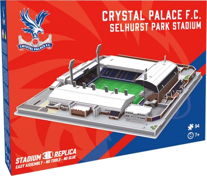 Uživajte v vzdušju angleškega nogometa s 3D sestavljanko stadiona Selhurst Park, domom kluba CRYSTAL PALACE. Natančno izdelan model iz polistirenske pene, prevlečene s fotopapirjem, zvesto ujame značilne prvine stadiona in bo krasil polico vsakega navijača.