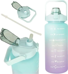 Bidon velike prostornine s kapaciteto 2 litra je zasnovan za celodnevno hidracijo. Na ohišju steklenice boste našli časovne oznake, ki vas motivirajo k rednemu pitju, in z preklopnim ustnikom s slamico pijete udobno brez nagibanja.