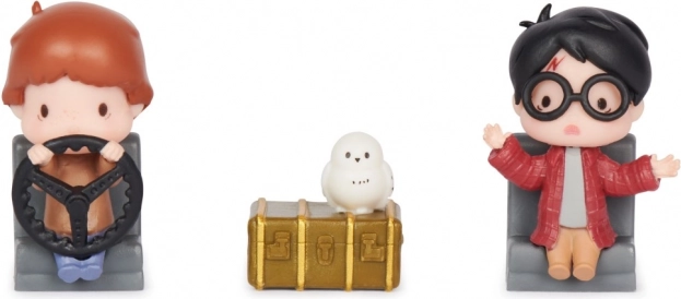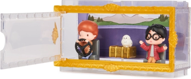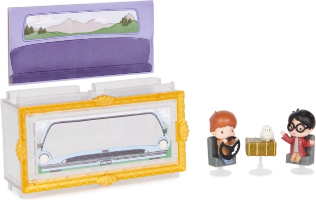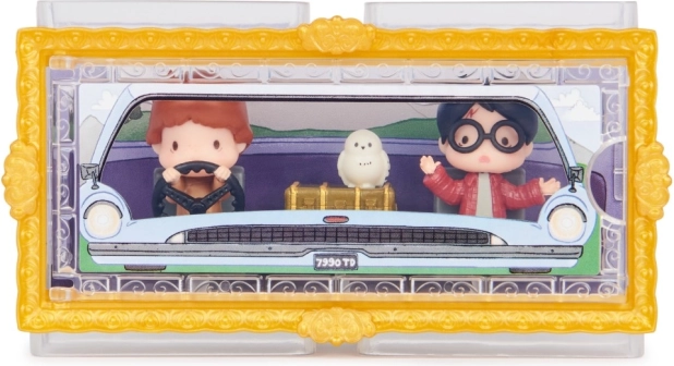 Vstopite v svet Skrivnostne sobane z natančno izdelanimi mini figuricami velikosti 3,81 cm. Harry in Ron v ikoničnem letečem avtomobilu družine Weasley ter sova Hedvika bodo navdušili vsakega oboževalca. Prozorna škatlica s tematskim ozadjem ustvari učinek, kot da liki sedijo kar v avtomobilu – popolno za stilsko razstavljanje.