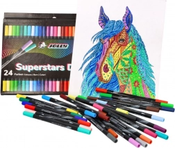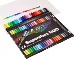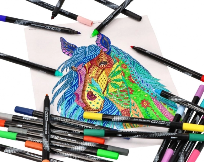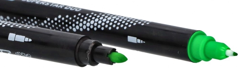 Dvojni flomastri Next Gen so odlični za male in velike ustvarjalce. Kombinacija fine okrogle in odrezane (poševne) konice omogoča preklapljanje med natančno risbo, konturami in polnim barvanjem površin z enim obratom flomastra. 24 intenzivnih barv ponuja bogato paleto za šolske projekte, domače ustvarjanje in kreativni odklop.