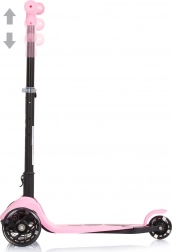 Otroški skiro Chipolino Robby roza je zasnovan za otroke od 3. leta dalje in ponuja odlično stabilnost zahvaljujoč trem kolesom. Okvir je narejen iz lahkega aluminija, kar zagotavlja enostavno rokovanje in prevoz. Krmilo je nastavljivo v tri različne položaje, kar omogoča, da skiro raste skupaj z vašim otrokom.