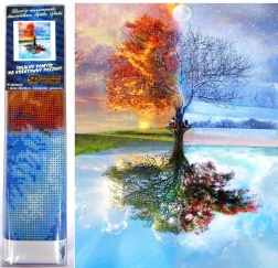 Diamantno slikanje je odličen način, kako se sprostiti in hkrati ustvariti čudovito mozaiko iz bleščečih kamenčkov. Motiv drevesa skozi štiri letne čase prinaša barvno harmonijo, ki bo izstopala v vsakem interierju. Vse potrebno najdete v eni škatli – odprite, začnite lepiti in opazujte, kako slika oživi.