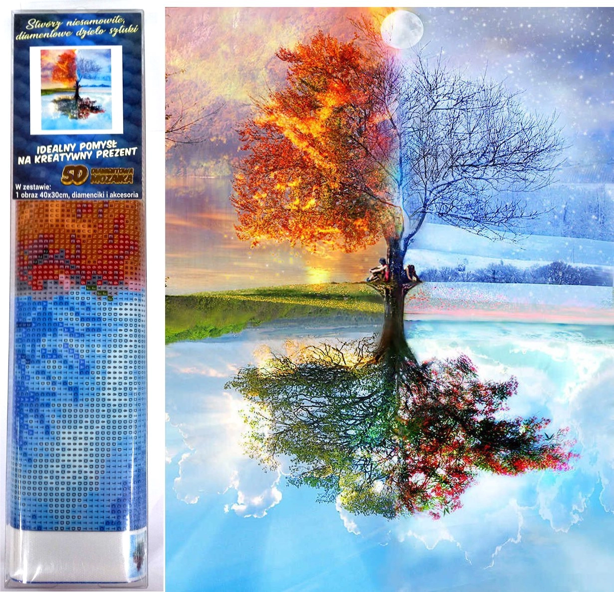Odkrijte sproščujoč svet diamantnega slikanja in ustvarite očarljivo sliko z motivom drevesa skozi štiri letne čase v velikosti 30 × 40 cm. Komplet vsebuje vse potrebno in je idealen kot kreativna zabava za otroke in odrasle. Zahvaljujoč preprosti namestitvi kamenčkov s pomočjo pisala bo tehniko osvojil vsak, tudi brez predhodnih izkušenj. Končano sliko lahko preprosto uokvirite in iz nje naredite izvirno darilo ali dekoracijo doma.