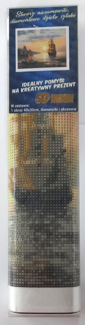 Diamantno slikanje je kreativna in sproščujoča dejavnost, pri kateri s pomočjo aplikacijskega peresa lepite drobne kristalčke na označena mesta na platnu. Rezultat je bleščeča mozaik slika z motivom jadrnice, ki poživi vsak interier. Komplet je primeren za začetnike in napredne – posebne veščine niso potrebne.