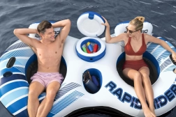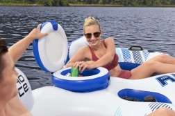 Napihljiv otok je idealen za poletno sprostitev na vodni gladini. Izdelan je iz trpežnega materiala, ki zagotavlja dolgo življenjsko dobo in enostavno uporabo. Zahvaljujoč naslonjalom in dvema držaloma za pijače lahko dosledno uživate v udobju kot na kavču! In to vse pri stalni temperaturi vaših pijač, ki jo ohranja vgrajen hladilnik.