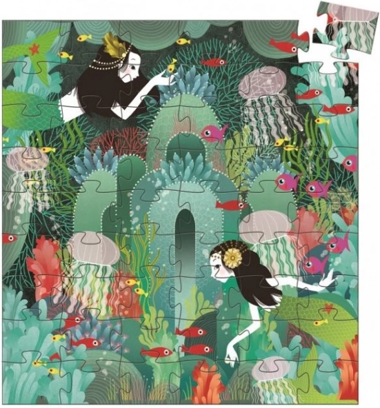DJECO sestavljanka Vodni raj s 54 koščki z motivom morskih deklic. Kakovostna izdelava, dimenzije 40 × 37 cm. Odlična zabava za otroke in razvoj veščin.