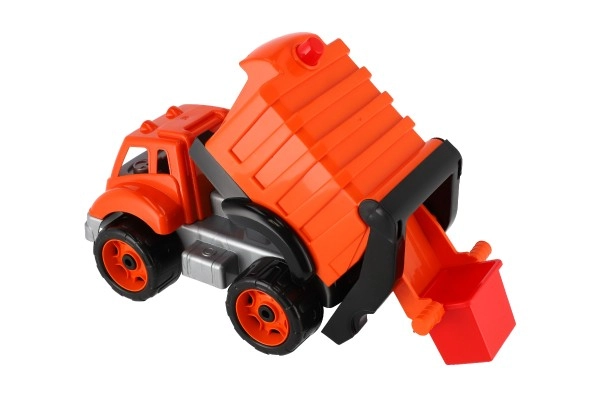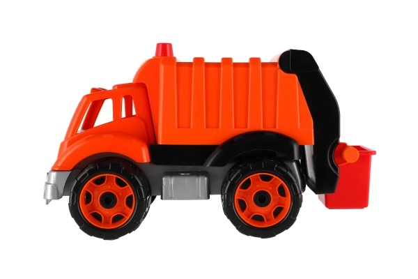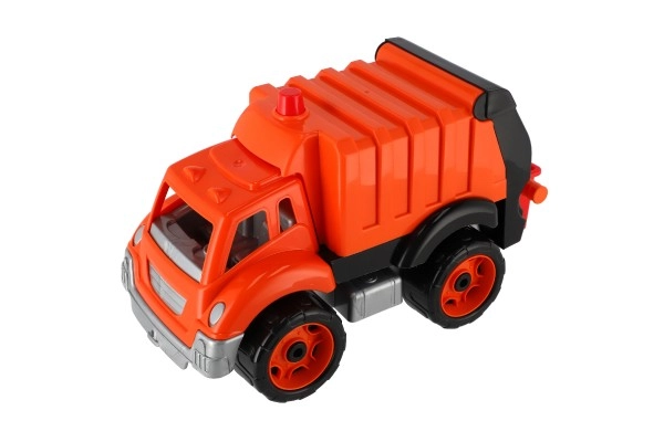 Odkrijte trpežen plastični smetarski avto, s katerim bodo otroci uživali v obilici zabave na vrtu, v peskovniku ali v sobici. Živo oranžna zasnova, robustna kolesa in kompaktne mere spodbujajo varno in ustvarjalno igro.