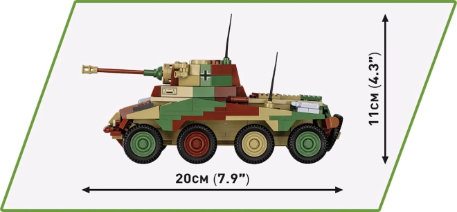 Model Sd.Kfz. 234/2 PUMA meri približno 20 × 7,5 cm in izstopa z avtentično obliko, kamuflažo in podrobnimi tiski, ki poudarijo vsak panel in pokrov.