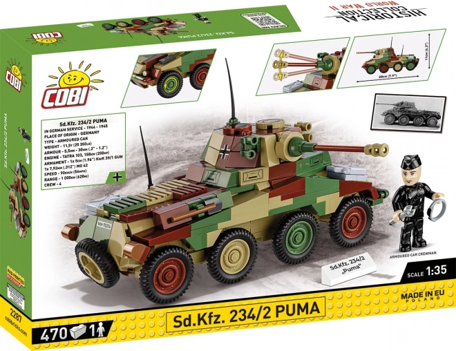 Pravi Sd.Kfz. 234/2 PUMA je bil hiter kolesni oklepnik iz druge svetovne vojne s 50-mm topom v popolnoma oklepljenem stolpu. Z zmogljivim dizelskim motorjem Tatra 103 je dosegal do 90 km/h, v terenu pa se je obnesel skoraj kot goseničar – te lastnosti se odražajo tudi v igralnih možnostih modela.