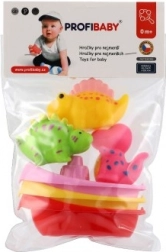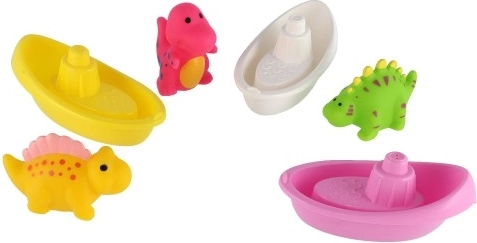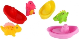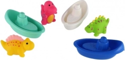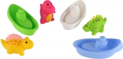 Ta praktični set združuje tri plavajoče ladjice in tri mehke pršilne dinozavre v živahnih barvah. Igrače so zasnovane za varno igro v vodi, enostavne za držanje tudi za najmlajše in podpirajo razvoj fine motorike, koordinacije oko–roka ter domišljije.
