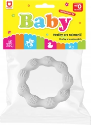 Lahko in odporno grizalo iz mehkega silikona je zasnovano za majhne otroške roke. Krožna oblika olajša prijem in upravljanje, medtem ko reliefna površina pomaga lajšati nelagodje pri izbijanju zobkov. Nevtralna bela barva se poda k vsaki opremi.
