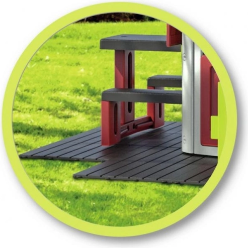 Tla pod hišicami Smoby so komplet talnih plošč iz visokokakovostne 100 % reciklirane plastike z protizdrsno in UV-zaščito. Ta tla so idealna kot podlaga za vse hišice in ponujajo preprost klik sistem za montažo.