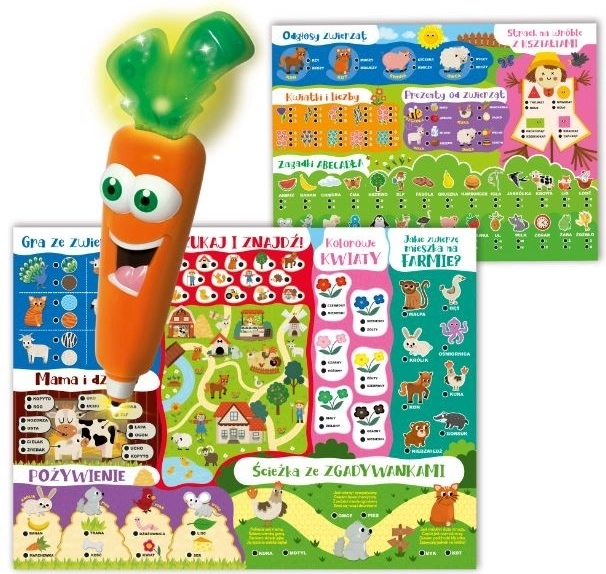 Laboratorij 50 iger s Korenjako je bogat komplet, namenjen predšolskim otrokom. Otroci imajo na voljo zvočno in svetlečo Carotino ter številne elemente iz trdega kartona, ki prikazujejo prijazne živali in predmete s kmetije.