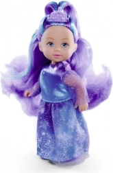 Sijoča modro‑vijolična obleka in ujemajoči pisani lasje iz punčke Evi Love naredijo pravo fantazijsko princeso.