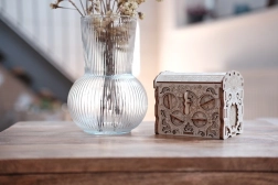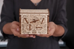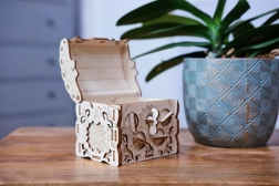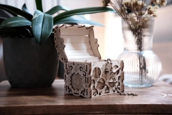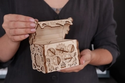 Spremenite obdarovanje v pustolovščino. Elegantna lesena škatlica z nežnimi izrezi in dekorativnimi detajli služi kot mehanski miselni izziv – obdarovanec mora odkriti pravi postopek, da pride do skritega presenečenja. Zaradi kakovostne izdelave je škatla ne le funkcionalna, temveč tudi dekorativen dodatek k interierju.