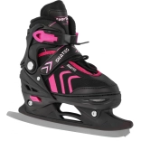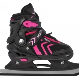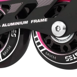 Za udobje skrbi profiliran vložek z mehko peno EVA, prevlečeno s prijetnim materialom Velvet. Trojni zapiralni sistem – vezalke, pašček z ježkom in varnostna zaponka – trdno in zanesljivo drži stopalo. Aluminijasti podvoz za kolesca, PU kolesca 64×24 mm s trdoto 85A in ležaji ABEC 7 prinašajo gladko in stabilno vožnjo. Ledna rezila iz nerjavečega jekla se preprosto vzdržujejo in omogočajo odličen drs.