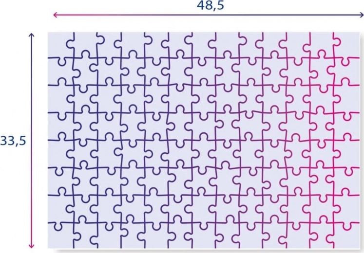 Približna velikost sestavljenega puzzle: 48,5 × 33,5 cm