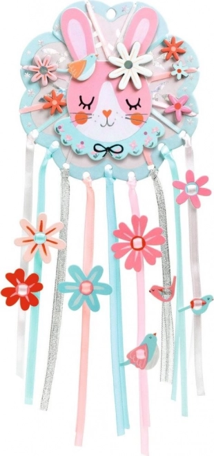DIY Lovilec sanj Zajček od DJECO je kreativni set zasnovan za najmlajše. Otroci lahko okrasijo zajčkovo glavo s tehniko kolaža in navlečejo barvite cvetove na barvne trakove in vrvice. S tem ne le razvijajo fino motoriko, ampak tudi njihovo kreativnost in potrpežljivost. Celotna izdelava poteka brez uporabe lepila in škarij.