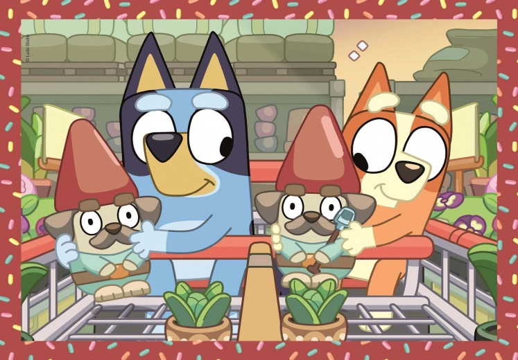 Sestavljanka 4 v 1 BLUEY znamke Clementoni: kakovosten tisk, natančno prilegajoči se koščki, razvoj motorike in koncentracije. Odlična zabava za otroke in odrasle.