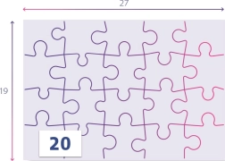 Dve otroški sestavljanki, vsaka z 20 kosi. Kolekcija Puzzle SuperColor – izdaja, zasnovana posebej za otroke, jim pomaga razvijati ročne spretnosti in sposobnost opazovanja. Kakovost materialov in ekskluzivna tiskarska tehnika zagotavljata trajno lepe, žive in sijoče barve. Dimenzije sestavljene sestavljanke približno 27 x 18,5 cm
