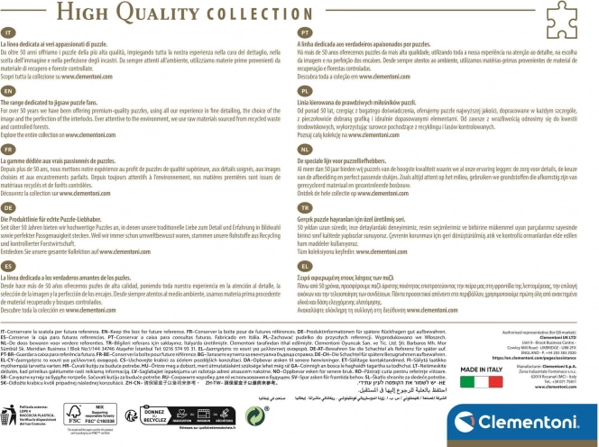 Uživajte v urah zabave z visoko kakovostnimi sestavljankami CLEMENTONI iz linije High Quality Collection. Motiv pariške ulice ob sončnem zahodu z ikoničnim Eifflovim stolpom izstopa po ostrini detajlov in bogatih barvah, ki po sestavi ustvarijo impresivno dekoracijo za notranje prostore. Zahvaljujoč natančnemu izseku posamezni kosi gladko držijo skupaj, sestavljanje pa je prijetno tekoče.