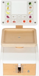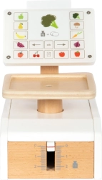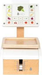 Otroška tehtnica small foot Fresh je idealen dodatek za vsako otroško kuhinjico ali trgovinico. Realno gibanje kazalnika in sklede ob obremenitvi podpira razumevanje principa merjenja teže. Velik “zaslon” iz kakovostnega akrilata je potiskan z upravljalnimi elementi ter motivi sadja in zelenjave, kar povečuje preglednost in zabavo pri igri.