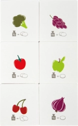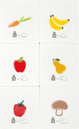 Del paketa je šest dvostranskih kartic s slikami živil in kovancev, ki otrokom nazorno pokažejo, da več kovancev pomeni višjo ceno na kilogram. Igra tako naravno razvija osnovne matematične spretnosti, fino motoriko in koordinacijo oko–roka. Robusten dizajn iz lesa in plastike zagotavlja dolgo življenjsko dobo in varno uporabo.