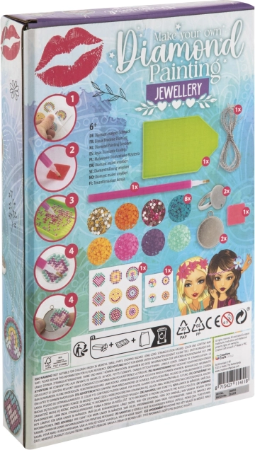 Odkrijte čar diamantnega slikanja s kompletom Besties in spremenite vsakdanje dodatke v edinstven nakit. Zahvaljujoč 8 barvam kamenčkov in natančnim šablonam boste zlahka ustvarili čudovite vzorce na prstanih in obescih. Komplet je zasnovan tako, da je intuitiven in zabaven tudi za začetnike.