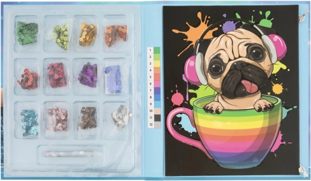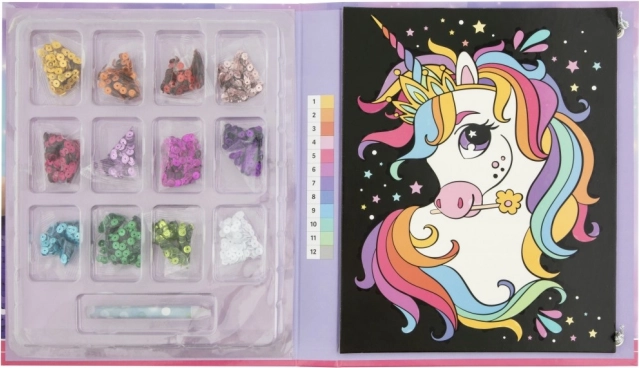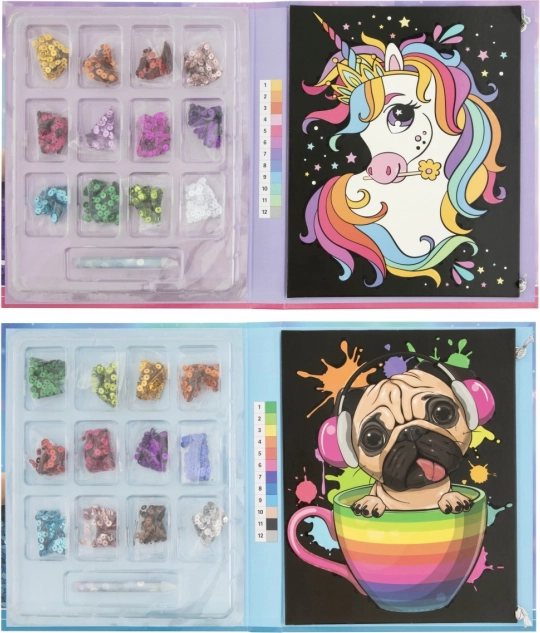 Odkrijte preprost in zabaven način, kako otroke vključiti v ustvarjanje. S tem kompletom za ustvarjanje po številkah bodo izdelali čudovito sliko z motivom samoroga ali kužka. Dovolj je, da barve povežejo s številkami in s pomočjo dozirnega pera namestijo barvne krogce na prava mesta.