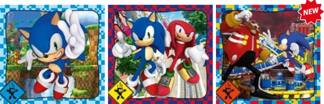 Zabavni trojni paket otroških sestavljank z motivom SONIC znamke CLEMENTONI: 3 kvadratne slike po 48 koščkov. Natančno prilegajoči se koščki, kakovosten tisk in razvoj fine motorike ter zbranosti.