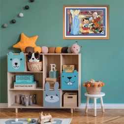 Pisano prizorišče iz klasične pravljice motivira otroke k sestavljanju in po dokončanju predstavlja privlačno dekoracijo.