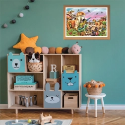 Potopite se v fascinantni svet dinozavrov s sestavljanko CLEMENTONI Land of Dinosaurs. Zaradi ostrega in podrobnega tiska ter trdnih koščkov bodo otroci in odrasli uživali v kakovostni zabavi, ki spodbuja zbranost in koordinacijo oko–roka. Končno sliko lahko znova razstavite ali jo podložite in spremenite v dekoracijo.