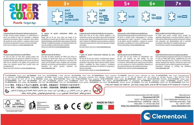Sestavljanje sestavljanke je idealna aktivnost za razvoj koncentracije, koordinacije oko–roka in prostorske predstavljivosti. Končno sliko lahko ponovno razstavite in sestavite ali jo podložite in uporabite kot dekoracijo v otroški sobi.