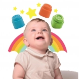 Izkusite varno in zabavno igranje z mehkimi barvnimi kockami za najmlajše otroke od 6 mesecev. Te kocke podpirajo razvoj čutnega zaznavanja, spretnosti in prostorske orientacije.