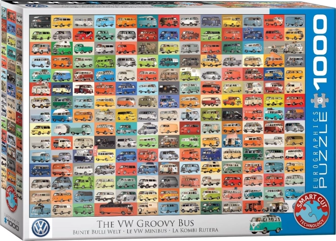Potopite se v svet kultnih vozil VW s sestavljanko EUROGRAPHICS »Groovy Bus«. Kolaž fotografij združuje vzdušje hipijevske ere in brezčasni dizajn znamke Volkswagen. Zahvaljujoč kakovostnemu tisku izstopajo barve in drobni detajli, zato bo končna slika odlična dekoracija.