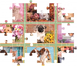 Odkrijte čar sestavljanja s kolekcijo SuperColor: kakovosten karton, natančni izrezi in odporni koščki, ki se gladko prilegajo. Motiv, poln mladičkov (in muckov) v nežnih pastelnih okvirjih, bo razveselil vsakega ljubitelja živali.